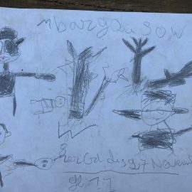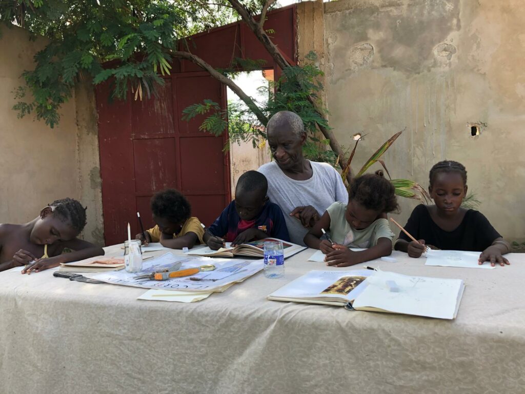 Un exercice subtil et exigeant, d’autant plus pour ces enfants peu familiers avec ce type d’observation. Pour les guider, notre artiste Alioune Badara Fall s’est prêté au jeu du modèle, leur montrant comment la lumière révèle les volumes. Les enfants ont ensuite dessiné sans gomme ni taille-crayon.